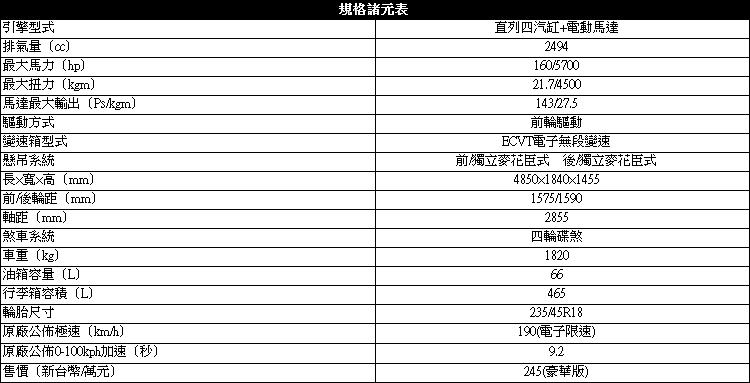GS車系導入全新動力300h![]() ▲直列四缸自然進氣引擎與永磁電動馬達,提高D4-S缸內直噴壓力,引擎調性兼具性能與節能。GS 300h是Lexus原廠在上海車展中亮相的全新車型,主要是將IS 300h引擎導入,並針對車輛配備做高規格的升級,外型上沒有明顯差別。動力上GS 300h搭載一顆直列四缸自然進氣引擎(代號2AR-FSE)與永磁電動馬達,提高D4-S缸內直噴壓力,得到更好的馬力輸出與油耗。高壓縮比Atkinson循環自然進氣系統,最佳熱效能高達38.5%,也就是說這顆引擎在GS 300h上會有更優異的節能表現。純引擎最大馬力為181ps,最大扭力22.5kgm,如果加上電動馬達動力綜效馬力有223ps,綜效扭力高達30.6kgm,靜止加速到100km/h需9.2秒,安全極速設定在190km/h。變速箱使用一顆ECVT電子無段變速箱(可模擬六速換檔模式),加速感受綿密沒有傳統自排變速箱換檔時的頓挫,Lexus Hybrid車系搭載ECVT變速箱已經成為不變定律。 ![]() ▲這次2014年式GS 300h排檔座改為Hybrid車型專用皮套式排檔桿座。![]() ▲GS 300h在車身重量達到1820公斤,與GS 250的1710公斤相比,就算綜效馬力較優異也得不到太大便宜。