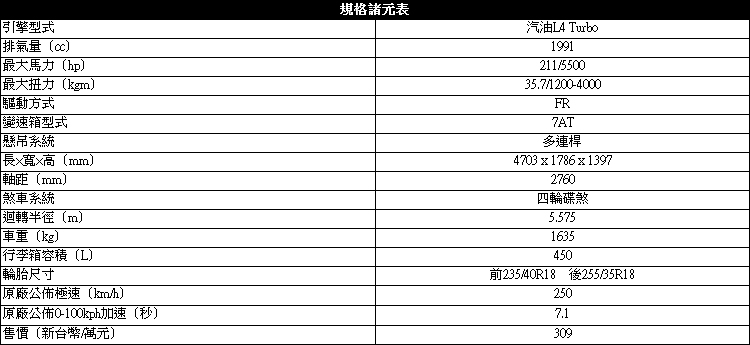 ![]() ▲0-100kph測試成績為7.1秒,極速則有250kph的水準。E250 Coupe搭載和E250 Sedan相同的2.0升缸內直噴渦輪增壓引擎,帳面數據都是最大馬力211hp、最大扭力35.7kgm/1200-4000rpm。然而兩款車的0-100kph加速測試成績卻稍有不同,Coupe以7.1秒小勝Sedan的7.4秒,不知是不是和前者車重輕45kg有關?