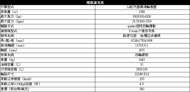![]() 我們當然知道要拿AMG來比較AUDI以應當拿RS3來應戰。但包括BMW在內有些是不確定後繼車款為何,有些則是處於測試階段,因此所列舉的僅是目前台灣市場較新、買得到、而且大小與性能表現相近的車款。