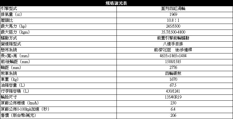 Drive-E家族245匹馬力引擎+八速手自排