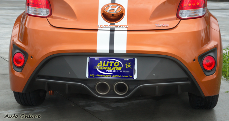 雖然由LED導光條所構成的尾燈組造型雖然不算犀利,不過視覺焦點則是集中於車尾下方的部分,以接近跑車風格的擴流板設計整合中出大口徑雙圓排氣尾管再搭配全車前下擾流、側裙、擾流尾翼等空力件,將車身外觀的侵略感提升至最高點。