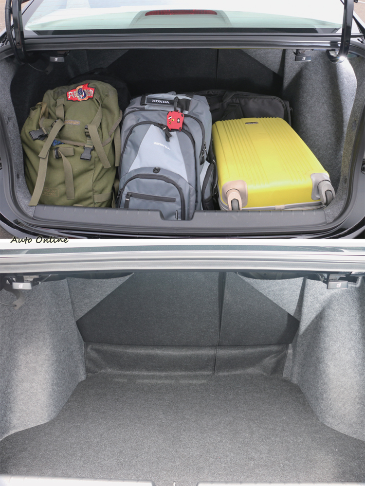▲後行李箱空間不僅夠深也夠高,放進四人行李與攝影器材都還綽綽有餘。
