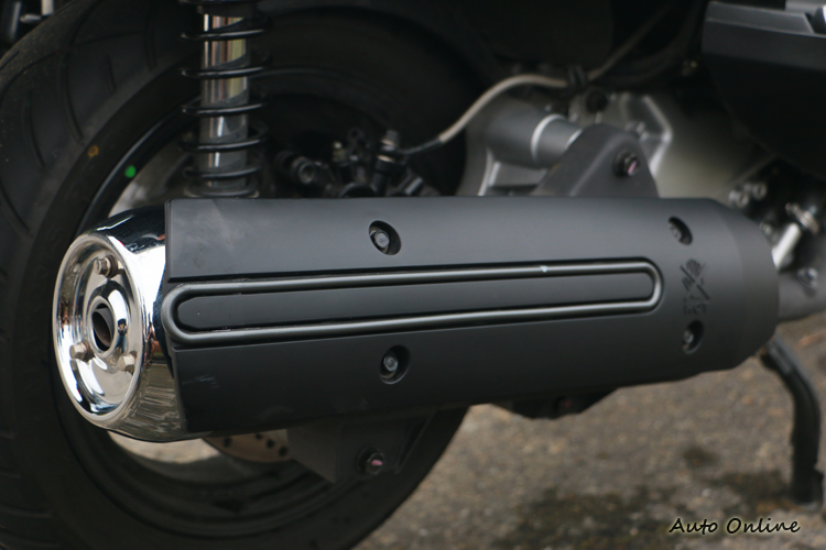 ![]() ▲單臂式油壓頂桿讓比較厚重RV座墊可以輕鬆的升起。此外值得讓人稱讚的是SYM這次在一些小地方也做了蠻細膩的處理,比方說坐墊採用單臂油壓式頂桿,車廂內也設有照明配備,若在郊外照明較不足的地方想找東西就不會手忙腳亂。 ![]() ▲行李箱內附設照明燈,讓夜間取物更為方便。![]() ▲從防燙蓋的造型到尾管飾蓋可以發現SYM在一些細節處上的用心。