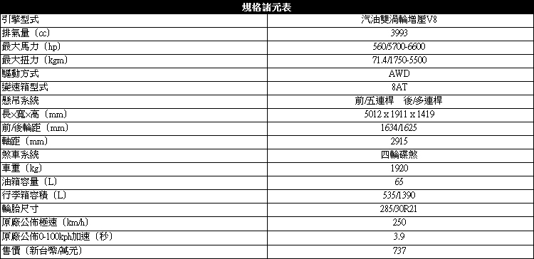 狠勁瞬間猛醒!![]() ▲這組4.0升TFSI引擎在低轉速時就可提供足夠的驅動力在市區行駛。還記得幾年前試駕這類品牌性能旗艦時,常見的馬力數據多半落在420hp附近,隨著近年渦輪技術的演進,基本門檻已經提高到500hp以上了。面對RS7 Sporback這顆4.0升TFSI V8引擎雙渦輪增壓引擎,馬力已達560hp,按照過去經驗,期待試駕履歷中又將增添一筆讓人暢快淋漓的體驗。不過且慢!別忘了這並不是純種跑車,它畢竟必須滿足高端客層舒適乘坐的要求,穿著西裝一路咆嘯開去上班未免太不像話,所以在標配清單中不會有RS排氣系統這種「噪音製造機」。 ![]() ▲急加速也沒有出現咆嘯巨響,RS7動靜之間都展露出低調性格。和其他RS車系一樣,這款車也搭配了quattro四驅系統,加上車上的各種電子輔助裝置與效率極佳的煞車系統,往往讓人覺得過彎速度快到莫名其妙,而且穩得非比尋常,似乎不需太多駕駛技術就能讓一堆純種跑車吃灰。高科技也許少了點人為失誤的刺激,但這也意謂它能讓人以更從容、更安全的駕駛方式來滿足一時的任性。