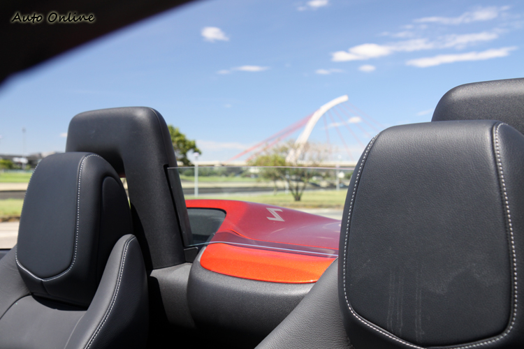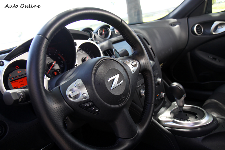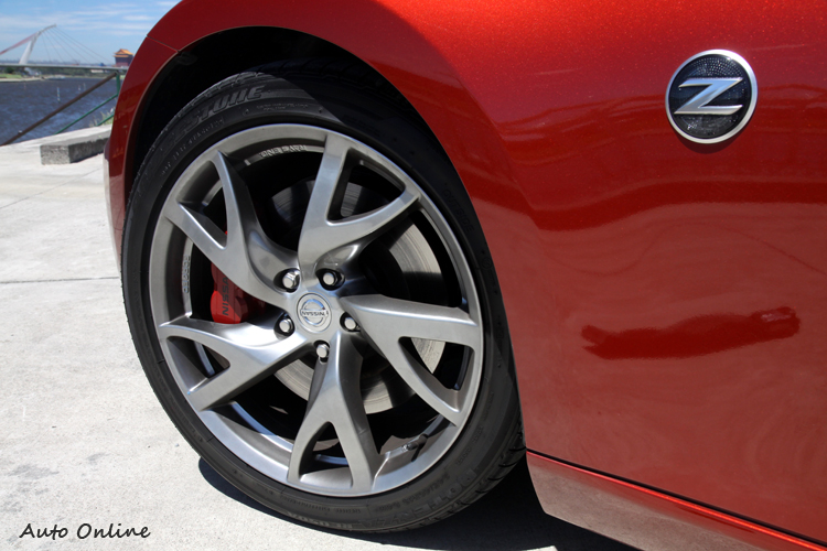2014年式樣 改變幅度小小的![]() ▲370Z Roadster前後燈具造型採回力鏢樣式,刻意做出前後輝映效果。2014年式樣370Z Roadster在外型上,維持經典長車頭短車尾比例,前後燈具迴力鏢造型相互輝映,車側有Z字造型方向燈,車尾左右雙出排氣管,中間有來自F1靈感的後霧燈,這些都是Z的經典元素。最大差異在前保桿增加直立式LED日間行車燈,保桿邊緣利用線條勾勒出Z線條,另外鋁圈也升級到19吋規格,鋁圈內的前四、後二的煞車卡鉗,也被改為紅色烤漆。 ![]() ▲2014年式鋁圈升級為19吋規格,裡面的卡鉗改為紅色塗裝。![]() ▲方向盤上有斗大的Z字樣,後方有類似GT-R的換檔撥片。![]() ▲三圓儀錶板,中間為轉速,能看出370Z Roadster以性能至上的DNA。![]() ▲中控台有全中文化觸控螢幕,上方有Z經典元素三環錶。![]() ▲雙前座椅包覆性好,半皮半布助於支撐身體。![]() ▲敞篷車很重要的迴風網,能確保到達目的地,頭髮還是整齊的。
