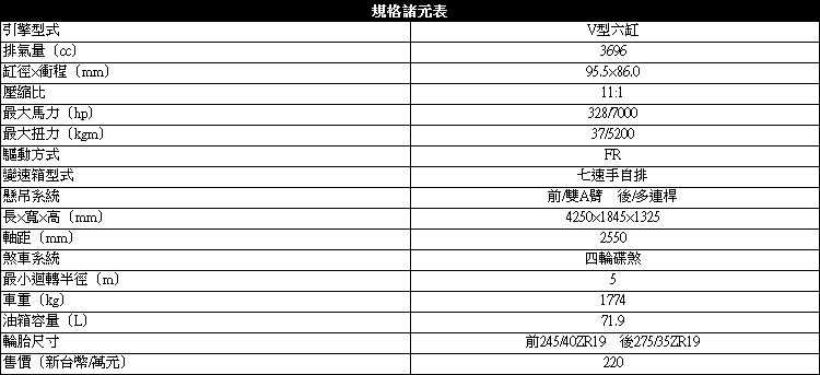 樂趣至上 高轉速展雄風![]() ▲VQ37VHR屬高轉速引擎,低轉速時引擎平順,但拉到高轉就像換了個性。以NISSAN的作風,從車名就能看出動力端倪。370Z Roadster搭載一顆3.7升V型6缸自然進氣引擎(代號VQ37VHR),從VQ35修改而來,並且導入進排氣可變汽門,提升引擎整體輸出表現。VQ37VHR最大馬力328hp/7000rpm以及最大扭力37kgm/5200rpm,從帳面數據來看,可發現VQ37VHR屬於一顆高轉速引擎,馬力峰值7000rpm,扭力峰值5200rpm,引擎轉速最高極限7500rpm,也就是在高轉速時,才能感受到它的魅力。 ![]() ▲七速的手自排變速箱,沒有任何模式介入,要何種感受取決駕駛者右腳。![]() ▲在享受敞篷車的樂趣前,必須先接受較差的車內隔音。