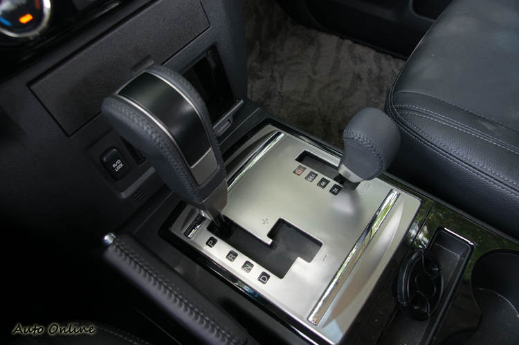 如果是沙地、雪地這種只是路面抓地力較差的路況則切到4HLc高速四輪驅動模式鎖定中央差速器,讓前後輪動力輸出分配鎖定在50:50;至於行駛於崎嶇岩路/泥濘地等更為惡劣的路況上,就需要切至4LLc低速四輪驅動模式,鎖定中央差速器後由加力箱在低檔時提供最大的扭力輸出來克服路況。如果碰到後輪其中一輪陷入打滑或無施力點的情況下,就需按下後差速器鎖定按鈕讓動力輸出至未打滑仍有施力點的車輪,提供該驅動力將車子帶離失陷的困境。