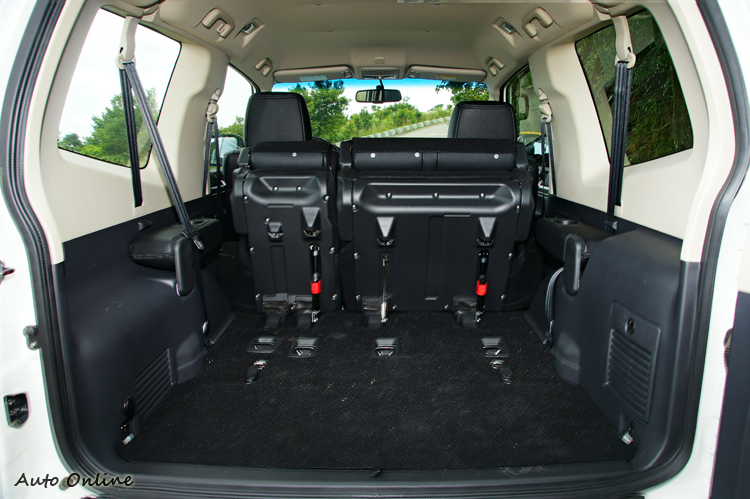 如果是要運載較多物品為主,則不僅一、二排座椅椅背可以完全放平,第二60:40分離座椅排還可以再向前翻,行李廂在座椅不放平狀態下容料為415公升,第二排放倒後則為1120公升。
