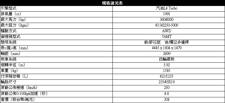 2.0升渦輪增壓引擎緊繃360hp![]() ▲引擎內部必須要強化,才能抵抗高達1.8bar高增壓摧殘。GLA 45 AMG搭載一顆專門為MFA底盤所開發的橫置引擎,2.0升直列四缸加上渦輪增壓系統,透過缸內直噴技術與高增壓設定,最大馬力達到360hp/6000rpm,45.9kgm/2250~5000rpm最大扭力。如此強大的輸出表現,在以前技術下只有大改的改裝車才有辦法達到,科技進步,原廠量產車就能達到緊繃的調校。不過原廠也表示,為了要達到市售車的耐用度,這麼大的馬力,引擎內部、散熱系統勢必要跟著強化。引擎內部活塞、凸輪軸使用鍛造製品,曲軸則是低壓澆鑄全鋁合金,要降低運轉負擔,凸輪軸用輕量化部品;引擎內部所有強化,就是要抵抗高達1.8bar高增壓摧殘。 ![]() ▲AMG從機械增壓、自然進氣到現在渦輪增壓,看到世代的演變。