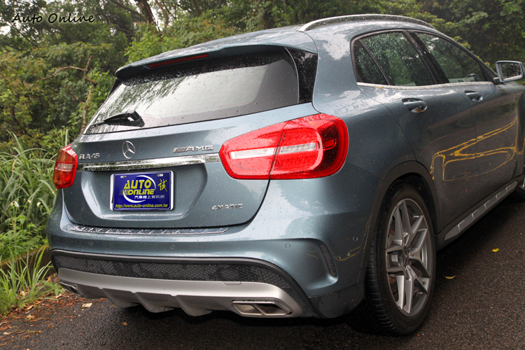 AMG SPEEDSHIFT+ AMG 4MATIC![]() ▲19吋AMG專屬鋁圈,裡面藏的AMG運動化制動系統,消費者也選配更大輪圈尺寸與造型。變速箱使用AMG SPEEDSHIFT DCT 7速雙離合器自手排變速箱,變速箱是專門為MFA底盤設定,如果是後驅車型搭載的會是AMG SPEEDSHIFT MCT變速箱。雙離合器變速箱最大優勢在換檔時間,兩組離合器交替作動,能快速切換檔位,達到高效能輸出。變速箱有手排模式「M」、跑車模式「S」與效能控制式「C」三種模式,透過電腦運算,不同模式得到不同感受。 ![]() ▲AMG跑車排氣管,保桿下緣整流板,左右兩邊刻意雕塑出散熱孔鰭片造型。![]() ▲激烈操駕時,GLA 45 AMG會出現因為車身重心高所帶來的側傾。
