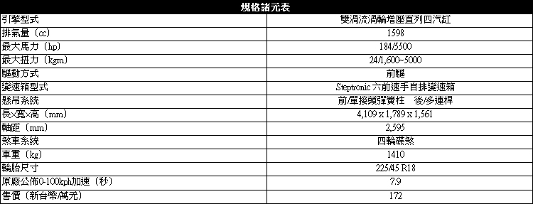 ▲熟悉的1.6升雙渦流引擎,最大馬力輸出為184匹。