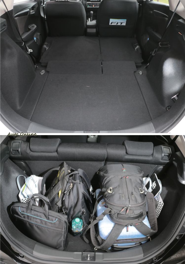 有些車廠為了營造更大的乘坐空間會偷偷縮小後行李空間。不過在標準坐姿下FIT仍保有363公升的後行李箱空間,我們放進3人的行李與攝影器材都還OK,不至於寬敞過人,但基本上是夠用的。如果還是覺得不夠用,那麼透過座椅變化可以做出原廠所謂的ULTRA座椅四種模式變化,增添空間利用機能性。