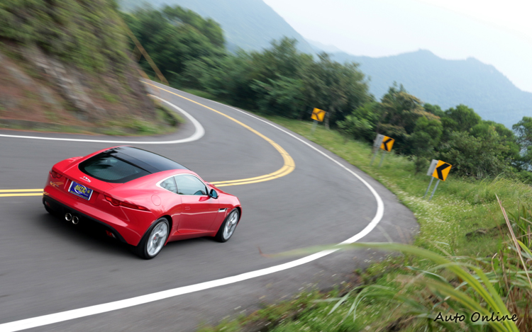 優雅中帶有暴力![]() ▲順順的快速加速,符合F-Type優雅的外觀。台灣所販售的F-Type Coupe有一般版本與R版本,R版本搭載5.0升V8汽油機械增壓,最大馬力550hp/6500rpm與最大扭力69.3kgm/3500rpm。一般版本則是3.0升V6汽油機械增壓,最大馬力340hp/6500rpm及最大扭力45.9kgm/3500~5000rpm,變速箱同為Quickshift 8速手自排,前置引擎後輪驅動。一般版本F-Type Coupe靜止加速只需5.3秒,極速設定在260km/h;但比較好奇的是,敞篷版本3.0升V6機械增壓,最大馬力可以達到380hp,而Coupe只有340hp。 ![]() ▲跑車跑得快,大部分人都只能看到車尾,F-Type故意設計美臀給人欣賞。V6引擎3.0升配置,最大馬力340hp與8速手自排變速箱統搭配,不能說它完美,但足以被稱之為跑車。加速力道明顯,轉速攀升快速,隨之而來是越來越快的車速;排氣系統沒有R版本的主動式跑車排氣管,在發動瞬間或者拉高轉速時,還是會發出低吼聲浪,與跑車形象極為匹配。駕駛在山路上,F-Type Coupe給人一貫英式風格,不是說它不能開快,而是它開快起來都很優雅,不會出現太多跟車搏鬥的畫面,也就是穿著西裝一樣能成為稱職的賽車手。