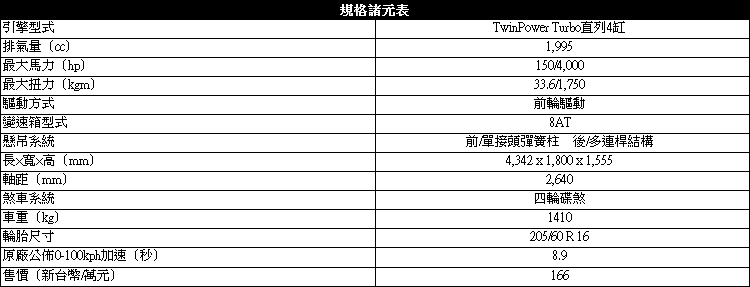 前驅的BMW展現夠水準的底盤設定,讓車開起來好上手又靈活。給車迷最大的好處就是前驅省下的成本讓2AT成為116i以外最便宜好入手的BMW。你會說那買後驅的116i就好啦!但要知道2AT雖然不能給你如1系列那樣犀利刁鑽的操控,但實際做過後座跟看完後行李箱容積後你發現2AT空間表現可是完勝!