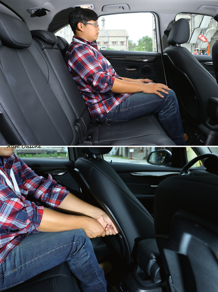 在定位上2AT要補足過過入門1系列在後座比較侷促的空間表現,因此2AT車身軸距來到2,670mm,因此後座空間相對寬敞很多。以172公分的乘員測試都還有2個拳頭的剩餘空間,頭部也絲毫不敢壓迫感,對於孩子已經上國中的四口之家要一起出去玩也都沒問題。