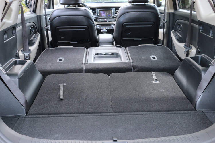 作為一部休旅車,座椅的機能設計格外重要,特別是國產化版本全車只有皮椅、腳踏墊等幾樣是台灣製造,這方面業者會更加用心。七座Carens都是旗艦車型,配備已是最頂規,使用的是5+2的配置方式。它的第二排座椅採用歐系MPV常見的3/3/3分離設計,且有獨立滑軌可以前後移動最多240mm,能讓第三排乘客進入更輕鬆,也可以讓後排乘客腿部更舒適。後兩排的座椅都能向前傾倒,形成平整的載物空間,縱使無法拆卸座椅,不過第三排座椅可在平常時摺疊藏於地板內,讓後方行李空間進一步擴充。