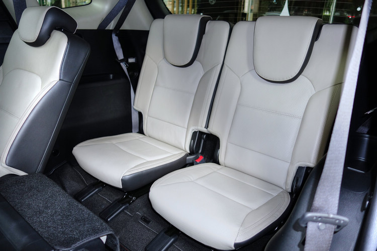 實際坐進去仔細觀察它的設計,第二排中央乘客的腿部空間仍然難免因為中央扶手以及前座滑軌的緣故而受到擠壓,幸好地板夠平坦,加上後排有獨立空調出風口,依舊能保有基本的舒適性。而第三排的側邊同樣有扶手支撐,甚至還有杯座與專屬收納格,並不是硬插進兩張座位來充數;以轎旅車的空間水準,當然成人想擠進去還是必須把第二排向前挪移,只是全車七座都有三點式安全帶和可調頭枕設計,而且座椅質感很不錯,除了象牙白的皮面很容易髒這個缺點,整體乘坐空間的規劃在水準之上。