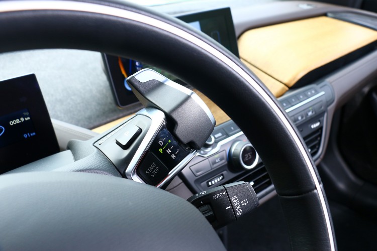 BMW i3有承襲BMW一貫操駕樂趣嗎?駕駛樂趣與電動車到底可不可以連結在一起?BMW i8或者Tesla已告訴你答案,但是i3的設計出發點並非為了操控而生,主要還是以都市代步為主。i3電動馬達安置在後軸上,有類後驅駕駛感受;車身使用大量碳纖維材質(簡稱CFRP)與鋁合金結合,減輕車身重量;電池安置在後座底下,整體重心更低與向後,前輪負擔降低,轉向也顯得靈敏。但由於輪胎尺寸前155/70 R19、後175/60 R19的節能胎,影響i3過彎極限與抓地力。以都市用車來說,i3的樂趣已超越許多國產小車,甚至與進口掀背車相等。 ![]() ▲排檔桿在方向盤前方,往前撥是D檔、往後是R檔,這與一般車輛設定不太一樣。。