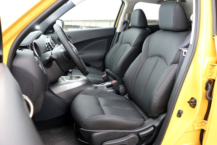 進到車內,日系車最讓人詬病應該是內裝質感問題,但在這次改款的Juke,內裝在了細節部分的質感提升。雖然中控台還是硬塑膠材質,透過咬花使提升視覺美感以及觸感;中控台影音系統增加7吋彩色觸控音響,包含衛星導航、藍芽、數位電視等功能。重機造型中央鞍座是Juke的特色,改款車型一樣被保留,鞍座顏色會依造車色有紅色與銀色兩種塗裝,像這次我們試駕的黃色Juke,鞍座就是灰色,但如果原廠能將改為與車身相同顏色,對提升內裝質感氛圍會有很大幫助。