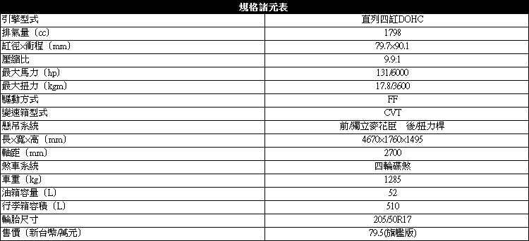 談完外觀與內裝的改變之後,接下來就要試試動力與操控,是不是也能與車名Sentra Aero相符感受。Sentra Aero與Super Sentra搭載同一顆1.8l直列四缸自然進氣引擎(代號MAR8DR-K1),原廠透過引擎內部優化處理,比起前一代引擎輸出更帶勁。最大馬力131ps/6000rpm與最大扭力17.8kgn/3600rpm,再加上第四代X-CVT無段變速系統(增加副行星齒輪組,可有更大變速比延伸),加速表現談不上勇猛,順暢是比較貼切的形容,足以滿足大部份消費者對「代步工具」的要求,有副行星齒輪的無段變速箱,更大的變速延伸得到較佳油耗表現,美規油耗數據達到每公升可跑18.2km。