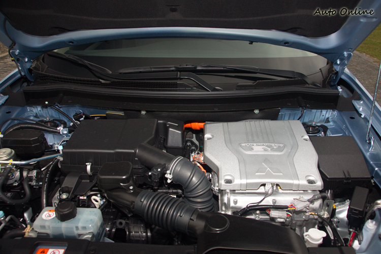 系統配置與運作觀念![]() ▲動力上大致具有2.0L渦輪的水準,不過動力反應比較線性。Outlander PHEV的混合動力系統配置方式為,車頭搭載2.0L排氣量代號「4B11」的MIVEC直列四缸引擎,可輸出121hp/4500rpm最大馬力與19.4kgm/4500rpm最大馬力,而在車子前、後軸則各配置一具電動馬達,最大馬力、扭力輸出分別為82hp/14.0kgm與82hp/19.9kgm。透過S-AWC四驅系統的管理就形成四驅形態。 ![]() ▲PHEV系統以2.0L MIVEC引擎與前/後軸的兩具馬達所組成。![]() ▲鍍鉻橫柵水箱罩與下氣壩看起來比國產2.4L車型更有質感。![]() ▲四驅系統提供鎖定模式提高克服惡路能力。