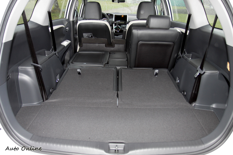 ▲第二排及第三排座椅傾倒,能得到寬裕的置物容積。