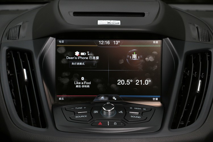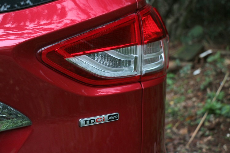 使用柴油引擎的Kuga在外觀沒有明顯變動,除了車尾多了一個TDCI專屬銘牌外,其它都與現行的Kuga相同。內裝與配備部分,也都維持原有扮相,中控台上有SYNC with My Ford Touch車載多媒體互動系統介面以八吋觸控螢幕,透過語音能控制音響及空調系統,如果連上手機還能語音撥號。中央扶手內有USB、SD卡插槽與行動裝置,能連接播放音樂,滿足了3C行動時代消費者的需求。不過整天試駕下,發現後座椅背角度過直,降低後座乘客舒適性,前座座椅椅墊長度不夠,無法完全支撐腿部重量。Kuga 2.0L TDCI車型標準配備感應式尾門,使用者只要在保桿下方用腳一晃,後尾門就會自動開啟,這是同級車中沒有的頂級配備。