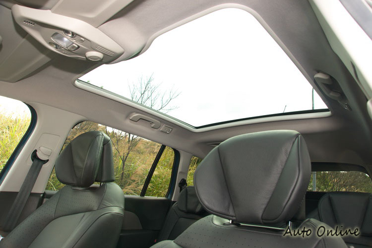 ▲大面積玻璃車頂的遮陽簾提供電動分段調整