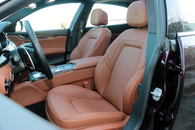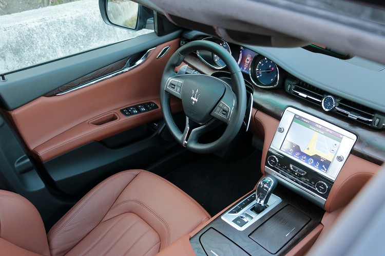 Maserati Quattroporte 330hp在外型上與等級較高的SQ4或者GTS版本幾乎一模一樣,只差在鋁圈的配置大小(330hp為19吋)以及車身上的銘牌來區別車型。至於座艙內的設計,當然差異性又更小,同樣使用高檔的木紋飾板作為中控台主要基底,再利用Poltrona Frau經典皮革搭配包覆,而Poltrona Frau經典皮革不只使用在中控台上,像是中央扶手、車門內扶手、座椅、方向盤、排檔桿都在使用範圍內。中控台上方的8.4吋的Maserati Touch Control 中央觸控面板,是車內影音系統的靈魂,支援中文化衛星導航、電台、音源輸入、恆溫空調等,但目前介面只有衛星導航有中文,其餘則是英文顯示,還有在操作方式不夠科技化,還是傳統的觸控方式來切換。Maserati原廠表示,之會應該會開發一套專屬配備,有點類似像BMW iDrive或者M-Benz Comand系統來增添科技感。
