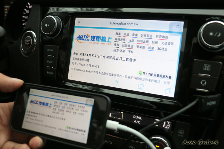 經過往返宜蘭長途跋涉,回到家身體一點酸痛都沒有,我想應該是Nissan最自豪的3D超體感紓壓皮椅功效,就像坐在自家的沙發椅上一樣舒適。影音系統部分紓解我塞車之苦,車內的X-Media除了可透過藍芽及USB連接手機外,還能透過HDMI線將手機畫面傳到X-Media八吋大螢幕。