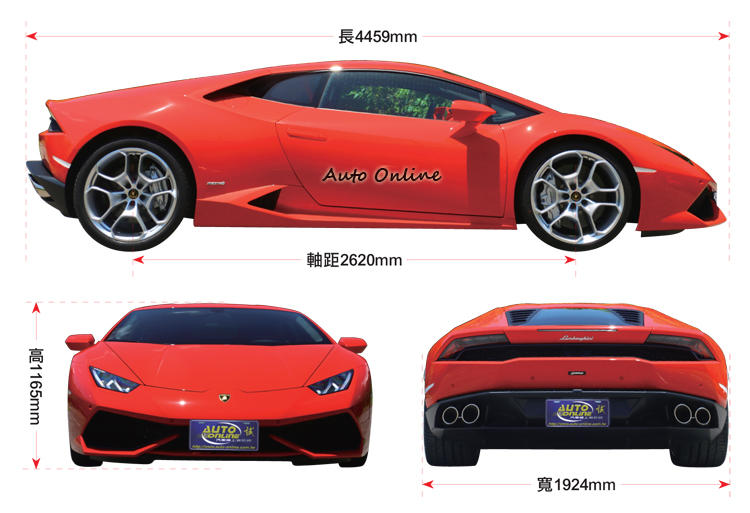 按照約定時間前往展間取車,第一時間看到Huracán 時,會被它的外型所鎮住。外觀造型跳脫Gallardo的框架,車身尺寸微微放大,車長、車寬、車高分別為4459mm、1924mm、1165mm,放大的幅度從外表不易察覺,還是覺得它低扁又寬大。