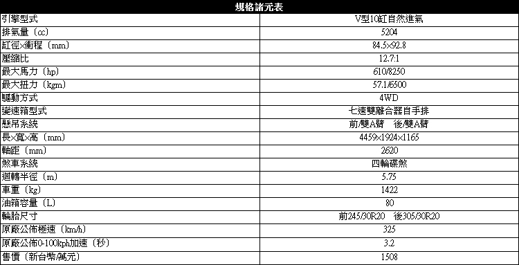 ▲5.2升V型十缸自然進氣引擎加速力道絕對不輸給渦輪增壓引擎。