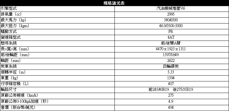 ![]() 記得在去年年底試駕過Jaguar F-Type,擁有英國古典美學的雙門跑車,就算動力不用太強,在路上就能成為大家目光焦點。原廠很不以為然的說什麼叫動力不用太強,F-Type引擎蓋底下躺著可是一具V型6汽缸3.0升機械增壓引擎,最大馬力有340hp與45.9kgm最大扭力,靜止加速到100km/h只需5.3秒。如果單看這樣的動力數據,幾乎找不到任何缺點,達到性能跑車的性能。但人的慾望永遠無底線,硬是要再拿來與其他性能車款相比,F-Type的表現只能說在及格邊緣。