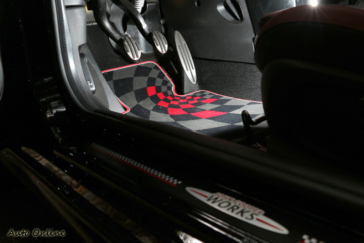 MINI JCW Pro套件加持![]() ▲水箱護罩上加裝的燈具並非霧燈,其功能是遠光燈束。試駕車款選足JCW Pro套件,套件包含前定風翼、後保下飾板、後尾翼加裝組、後視鏡外蓋、方向燈飾板、鍍鉻尾飾管等,套件的加持,姑且不談它實質功效,對於MINI JCW整體有畫龍點睛的效果。車頭最醒目的套件是原廠加裝LED遠光燈套件,外加的車頭燈組從R世代MINI就是熱銷產品,與當時Classic MINI跑拉力賽的裝扮相仿。加裝燈組與車內遠光燈連動,無法獨立開啟,夜間開啟遠光燈時,前方會感覺一片光明。