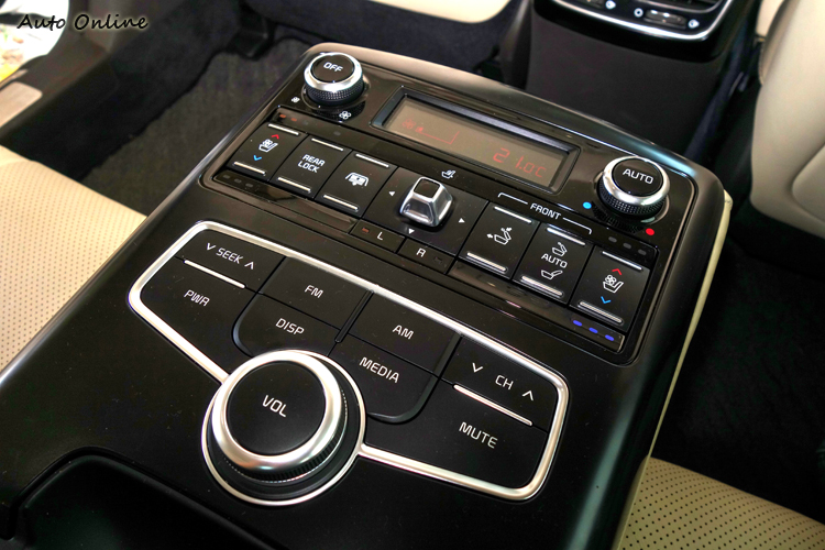 VIP後座 舒適體驗![]() ▲刈包包覆式頭枕、雙獨立座椅、前後和傾斜電動可調、還有專屬的面板可以使用。寬大又柔軟的Nappa真皮座椅是內裝的重要賣點,包括頭枕高度、椅墊前端的大腿支撐,都可電動調整,前座還有2組記憶和冷暖空調的設計,真是頂級禮遇!後座是雙獨立設計,商務艙等級的「刈包」頭枕更是總裁必備,藉由超長軸距的優勢,而且還有電動調整前後的設計。 ![]() ▲後座專屬面板可操作空調、娛樂和座椅系統,以及後檔遮陽簾。![]() ▲前座鞍座上提供整合系統的控制面板,以及懸吊、遮陽簾、駕駛模式、攝影畫面的調整。![]() ▲VIP後座椅提供One Touch副駕調整功能,前座側面也有微調的按鍵。![]() ▲大型車等級的行李廂,掛勾、植絨處理和固定網設計都相當齊備。