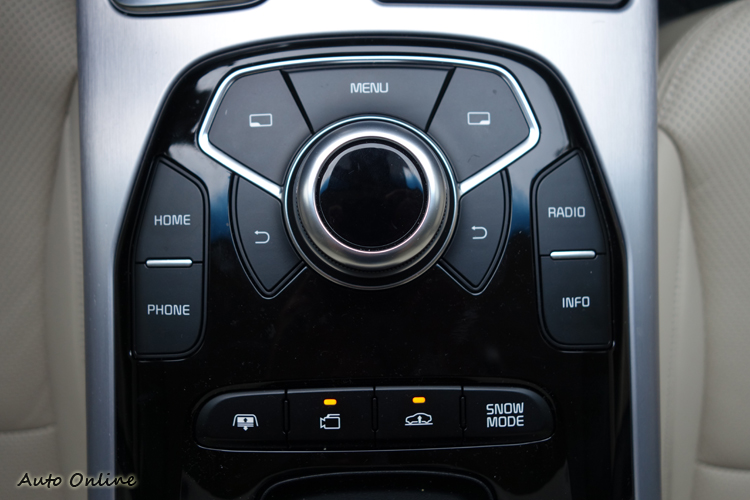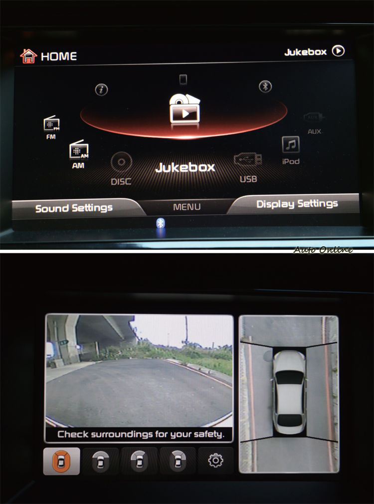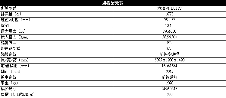 精緻路感 寧靜安心![]() ▲碩大的V6引擎佔據了整個引擎室,在飾板的包裝下,看起來相當清爽。KIA因應全球不同市場,為Quoris準備了3.3升V6、3.8升V6以及5.0升V8引擎的動力系統,而這款車搭載的是3.8升V6汽油引擎,可輸出最大馬力290ps/6200rpm、最大扭力36.5kgm/4500rpm。變速系統搭配的是8速自排,最後3檔為超比檔,用以在高速巡航時爭取更好的油耗表現。作為頂級旗艦,Quoris採用的是主流的前置引擎、後輪驅動配置,並且把對手僅配置在高階車型的可調式氣壓懸吊系統列為標配,不過前後車輪採用相同規格,都是245/50R18的Hankook K415輪胎,倒是在午後暴雨下高速奔馳,並沒有出現水漂現象。