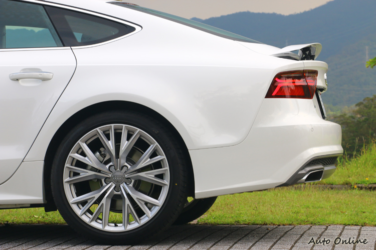 ![]() ▲從車頭望去又有雙門跑車的外在形象,馳騁性格表露無遺。在德國三大車廠之中,AUDI的外觀設計功力一直都是最能緊抓潮流腳步,甚至經常是引領潮流的先驅。會有這種現象其來有自,大約從10年前開始,AUDI的產品特色出現很大的轉變,風格開始強調起雅痞、操控、與性能的路線,這樣的變化也反應在他們的產品特徵上,一般人從外觀造型與硬體設定也能看得出來。直到今日,這種特色依舊是AUDI產品很重要的主軸,不過近幾年風向的轉變,讓AUDI決定把科技也納入他們的造車哲學中,在最能表達品牌個性的掀背與斜背車上,以上的特質更容易看出來,就像眼前的A7 Sportback一樣。 ![]() ▲主動式尾翼除了能手動升降,也會在車速超過130kph自動升起,降到80kph時又會自動收回。