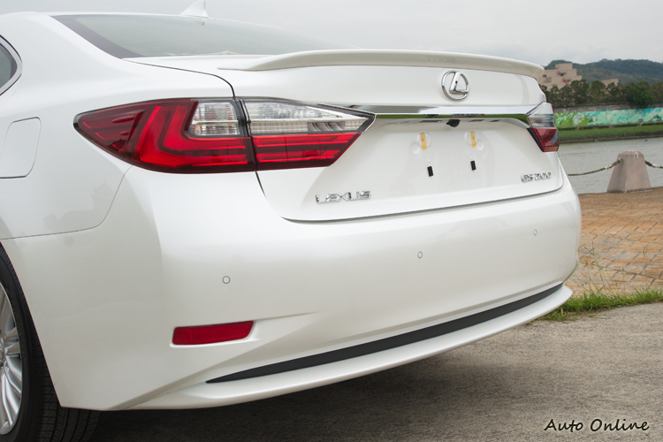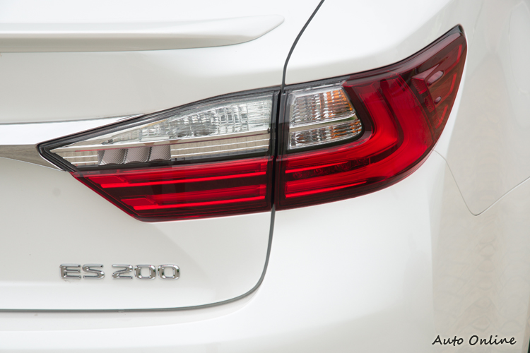LED尾燈維持同屬LEXUS家族元素的L-Shape造型,但上方增加了後擾流尾翼來強化視覺,ES 200尾管現在也採取跟ES 300h相同的作法「隱藏」在後保險桿內,雖然看起來比較簡單,不過車頭想要強調的強悍感覺,到車尾卻因而被「收」掉就有點可惜。
