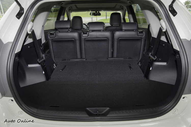 空間的彈性運用更是它的重點,採4:2:4分離設計的三張第二排座椅椅背都可以向前放平,第三排二張座椅也是如此,而且放倒後的高度與行李廂地板同高,也就是說二、三排座椅放倒的話可以形成地板平整沒有什麼高低差的寬大後方行李空間,收納容量達到1035公升。