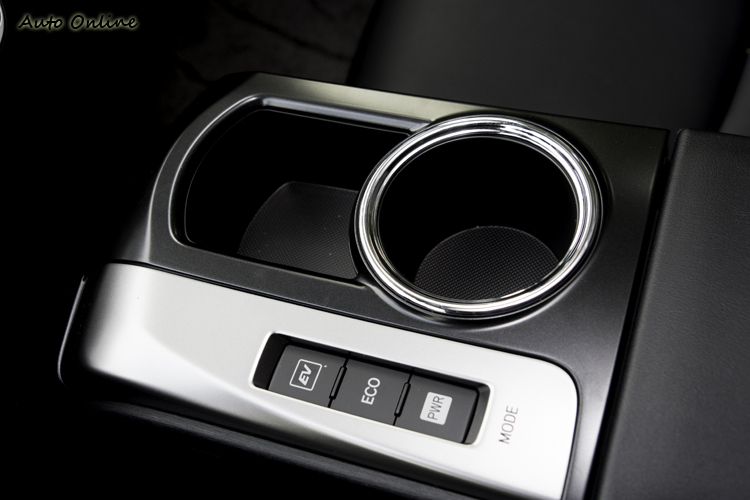 車上提供了三種駕駛模式,其中「EV」純電模式讓車子變成「電動車」,完全由馬達驅動,雖然安靜無噪音也無廢氣排放,不過可行駛里程不長,電量不足時引擎就會自動介入。「ECO」節能模式會盡量讓車保持在節省燃料的運作狀態,包括高負荷狀態下較頻繁以馬達來輔助引擎驅動車輛,以及透過變速系統抑制轉速的拉高減少油耗,而其代價則是非常「溫和趨緩」的動力與加速表現。