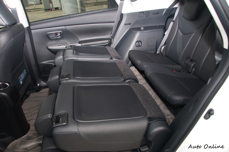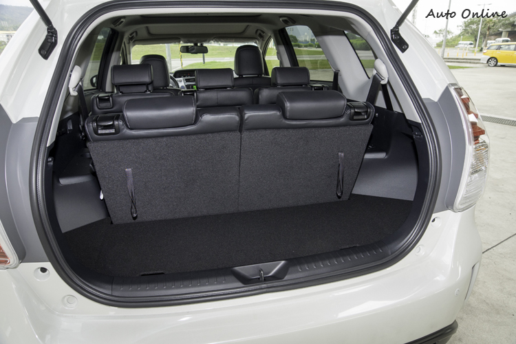 Prius α車身呎碼與Wish相近,以乘坐空間來說,Prius α第一排座椅乘客的著座位置至第三排乘客著座位置的長度為1635mm,比Wish的1685mm略短了50mm,但一、二排之間的著座位置距離反而是Prius α的965mm略多出Wish的950mm,換句話說相較於Wish,Prius α其實還是比較著重第二排座椅的空間表現。