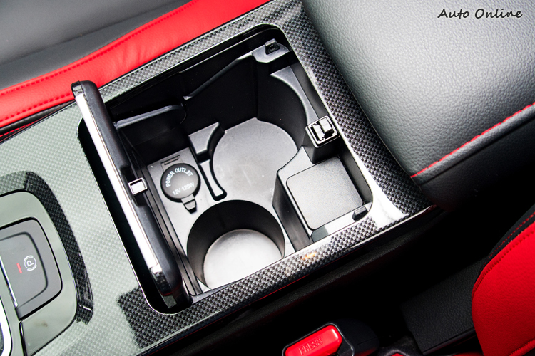 ![]() ▲紅黑雙色帶紅色菱格紋的座椅襯托出車內動感氛圍。而在車室內,首先讓人注意到的就是乘坐感優異,對兩側也有提供適當支撐、造型亮眼的紅黑色運動化座椅,改變了剪裁及色塊配置,並搭配紅色車縫菱格紋。 ![]() ▲中央鞍座的類碳纖維飾板引人與性能車聯想。