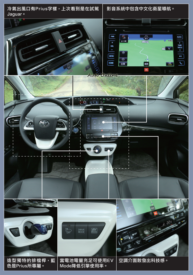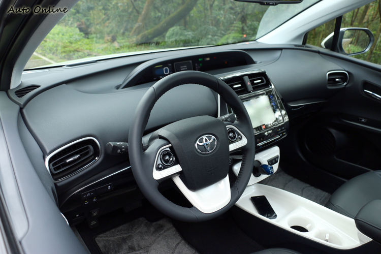 ▲置中的儀表板是Prius一貫特色,較高中控台與門飾板有被環抱的感覺。