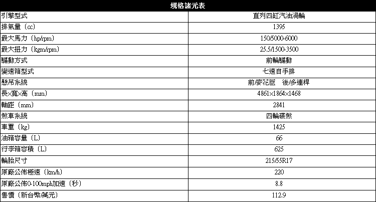 相信大家對這具動力在這部車上的表現應該反而比其他較大動力的版本更有興趣。因為在過往的年代,1.4L排氣量的引擎即使是渦輪引擎要出現在中型房車上都不易見,更不用說是車長超過4.8米的中大型房車。