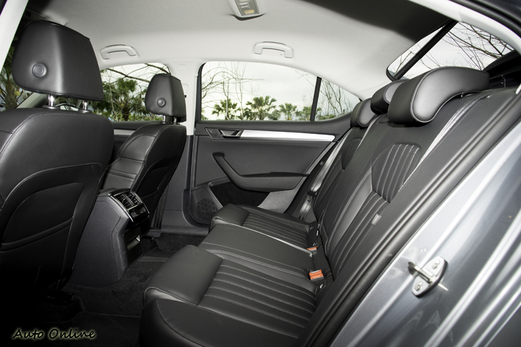 由於換上了VOLKSWAGEN集團的MQB底盤基礎,車身尺碼比過去略有成長,而其中加長達80mm的軸距就對於後座空間寬敞度有明顯的加分。特別是對於不少新世代的同級房車來說,雖然車寬的「數字」是增加了,但其實主要是用來增加車輛受到側向撞擊的緩衝空間,在「橫向」的乘客活動空間上並沒有什麼幫助。但三代Superb則在後座的肘部活動寬度上增加了將近7公分。