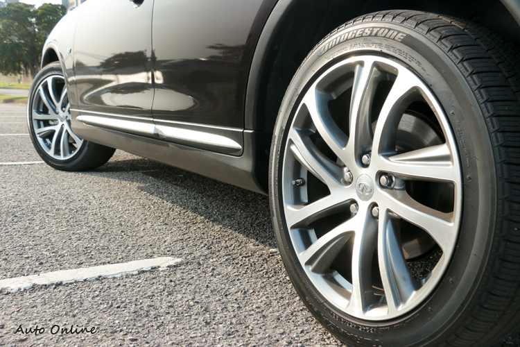 改走精品路線風格![]() QX50經歷了將近十年光景,在未宣布大改款前原廠做了最後一次車型小改款,改款的重點琢磨於外觀的質感提升以及內裝的乘坐品質。改款QX50車長、車寬及軸距增加4750mm、1615mm、2880mm,車寬則維持不變,就算屬家族中最小的成員,駕駛者或乘客都能享受寬敞座艙舒適度;除此之外,休旅車可能因為車高設定,不利於上下車這點Infiniti也想到了,特別降低車門檻的高度,穿著禮服正式服裝也能呈現出最優雅的動力人身影。 ![]() ▲QX50有著家族設計語彙的水箱護罩,保桿結合LED日行燈。![]() ▲輪胎尺寸從原本18吋升級為19吋。