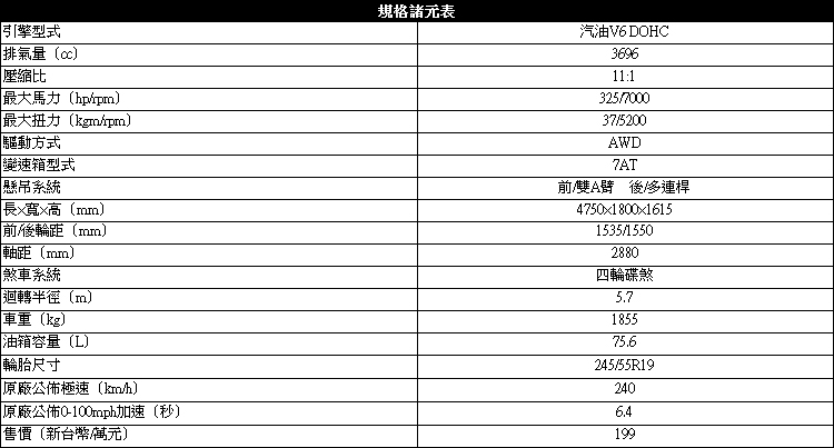 入手前請接受大排氣量![]() ▲改款後售價調降為199萬元,與對手相比有絕對優勢。平心而論Infiniti QX50擁有的優點很多,外觀不會過於花俏也不至於太沉悶,流線的車身線條帶點跑車設計感;內裝設計與用料有與雙B抗衡的實力,配備及空間運用帶給使用者貼心的享受。改款後售價調降為199萬元,與對手BMW X3、M-Benz GLC以及Lexus NX相比有絕對優勢。唯一的缺點就是它的排氣量,現今車廠提倡節能紛紛改走小排量渦輪增壓引擎,而產品末期的QX50依舊還使用3.7升排量的動力。VQ37VHR頂著十大優異引擎的光環,同時是QX50的優點及劣勢,自然進氣高轉衝勁會令人陶醉,只不過消費者必須承擔較重的稅金。 ![]() ▲煥然一新的精緻跑旅,是值得消費者細細品味它的好。