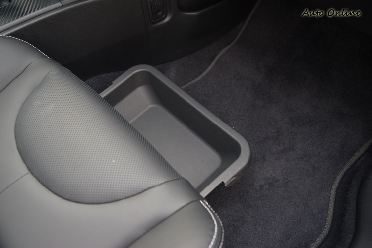 置物空間也是一樣,車內置物空間眾多,從手機錢包之類的零碎小物,到書本、平板電腦之類的隨身物品,甚至是副手座下方的隱藏置物盒這種女性乘客喜歡多放一雙鞋的地方都有不錯的收納規劃。
