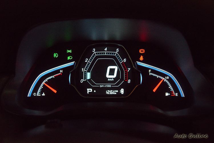 (中高規以上車型)儀錶組採用數位化顯示,車速、轉速、檔位、油耗等主要資訊都集中在中央位置,判讀時視線比較不需移動,在一點科技感外也讓駕駛視線能保持於正前方避免分心所導致的意外。