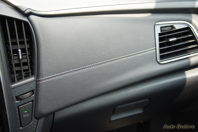 ▲中控台兩側以皮質包覆,上方雖為塑料但也加入縫線「裝飾」。